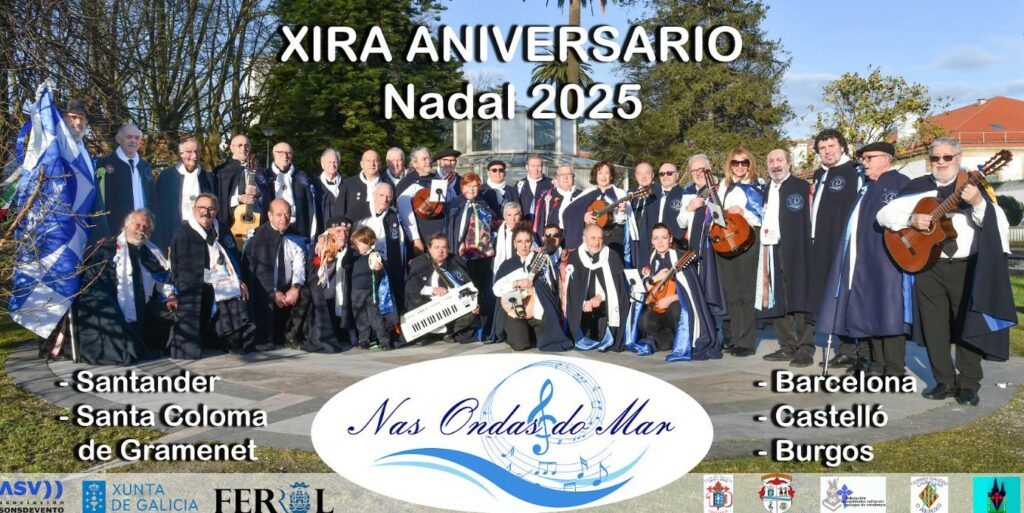A Agrupación Artística «Nas ondas do mar» vai conmemorar o seu primeiro aniversario cunha xira artística polo norte e levante de España na próxima ponte da Constitución. En colaboración con centros galegos e o apoio institucional da Xunta de Galicia levara na súa música por diversas cidades para aledar o Nadal as comunidades galegas residentes e de paso promocionar a Festa das Pepitas, tan necesitada de proxección exterior.