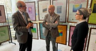 A coordinadora do máster en Tecnoloxía Téxtil e Moda Sustentable, Belén Montero, e a profesora da materia de “Ecotéxtiles, Ecodeseño e Reciclaxe”, Ana Ares, acompañaron ao alumnado durante toda a visita.