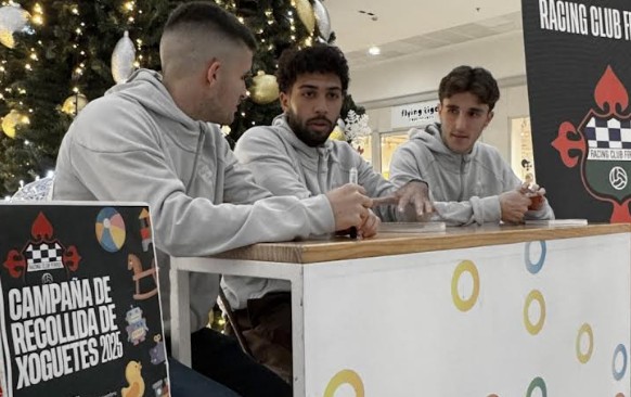 La Fundación Racing Club de Ferrol celebró esta semana una recogida de juguetes, tanto en las oficinas del estadio de A Malata como en un acto en el Centro Comercial Odeón el pasado jueves en el que estuvieron presentes los jugadores del primer equipo, Álvaro Peña, Edgar Pujol y Azael. Una iniciativa que tendrá su punto álgido en el partido de este domingo, donde en las puertas de acceso al estadio se podrán depositar juguetes y libros para que ningún niño se quede sin su regalo estas Navidades.