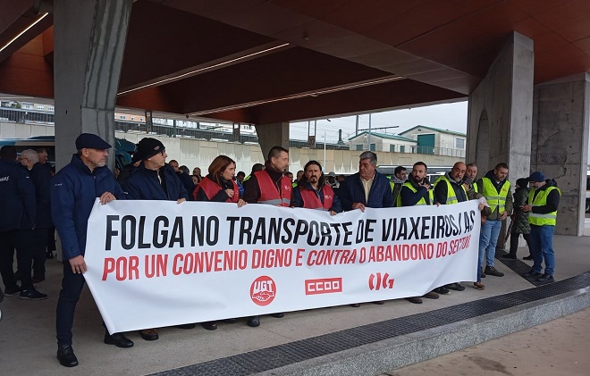 En declaraciones a la prensa, el responsable de CIG Transportes, Ernesto López Rei, ha explicado que esta tercera jornada de movilizaciones en 10 días –las anteriores tuvieron lugar los días 5 y 12 de diciembre– provoca que el transportes en bus esté «parado» de forma generalizada, en una protesta que se produce de forma «tranquila«.