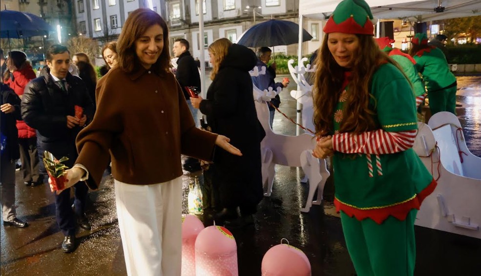 El alcalde de Ferrol, José Manuel Rey Varela, saludó la iniciativa, que viene a complementar la ambiciosa iluminación festiva instalada en la ciudad, así como la programación de Nadal. Hace falta destacar que, en el entorno del árbol se instalaron cuatro iglús vinilados con la imagen de Papá Noel y de los Reyes Magos, y una carpa -disponible esta tarde de 17:00 a 20:00 horas- atendida por monitores medioambientales que ofrecen información sobre la recogida de residuos y que invitan a los visitantes a participar en juegos de preguntas y en tres en línea.