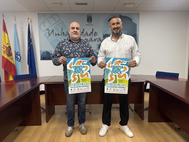 O concelleiro de Deportes de Narón, Ibán Santalla, e o presidente da Agrupación Deportiva Náutico de Narón, Amando Guerrero, presentaron unha nova edición da Trintaeundoce, a tradicional San Silvestre naronesa que cada ano reúne a centos de participantes na cidade.