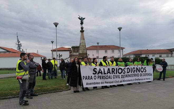 Personal civil del Ministerio de Defensa se concentró este jueves ante la entrada del Arsenal Militar de Ferrol para reclamar un aumento salarial que sea equiparable al concedido al personal militar y la consolidación de las subidas retributivas realizadas a finales de este año.