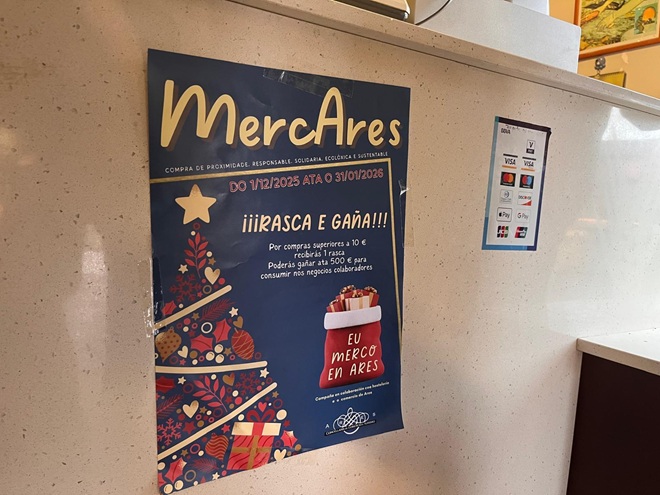 O galardón económico chega en forma de vale para investir nalgún dos máis de 90 establecementos adheridos este ano ao MercAres, facendo así que o premio fique no municipio a partir dun consumo circular e sostible.