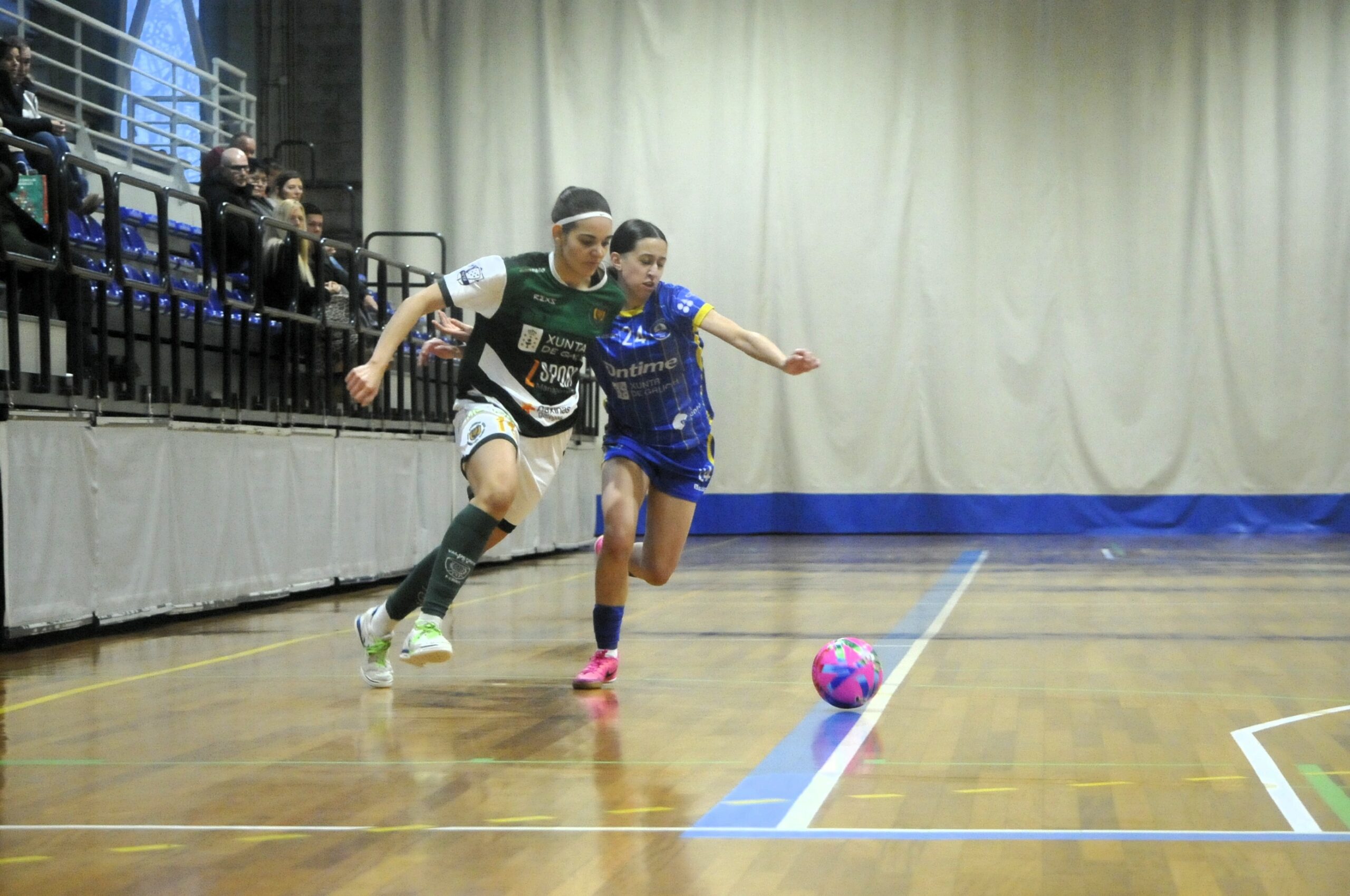 Los nervios aumentaban en el Ourense Ontime “B” y eso lo pagaban caro, al cometer su portera Nieto una falta de saque de puerta, dándole al Valdetires Ferrol un tiro libre indirecto en el borde del área, circunstancia que no desaprovechaban para que Monti anotase de jugada al segundo palo el 5-5.