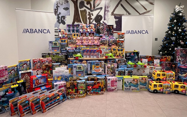 ABANCA e Afundación entregaron este pasado martes a Cáritas, Cruz Vermella e a Fundación Madrina un lote de 2.340 xoguetes novos no marco da súa campaña solidaria de Nadal ‘Debuxar sorrisos’. As tres organizacións sociais encargaranse agora de repartir os agasallos entre nenos e nenas de familias que están a vivir momentos complicados, asegurando que teñan unha sorpresa nas súas casas o Día de Reis.