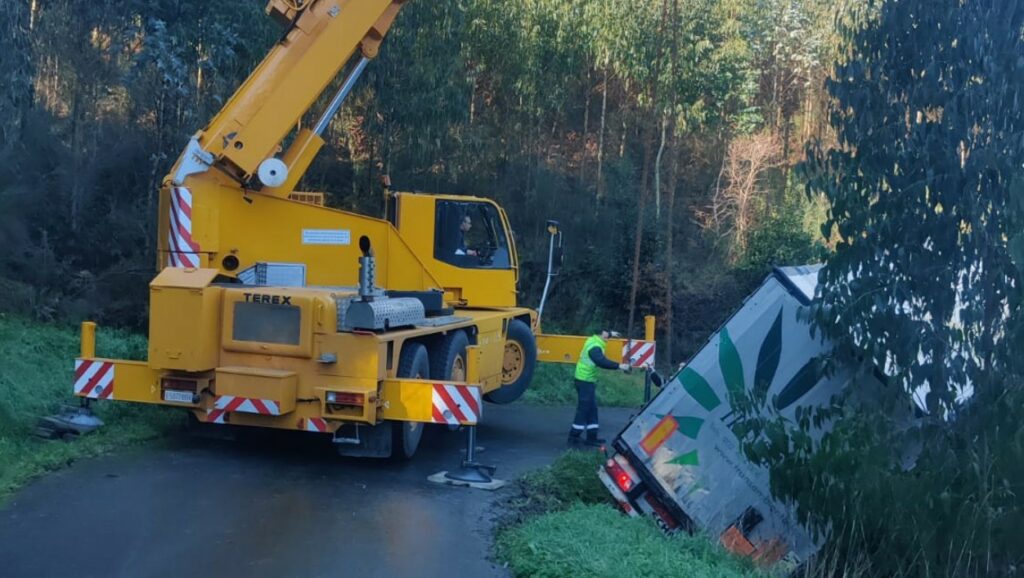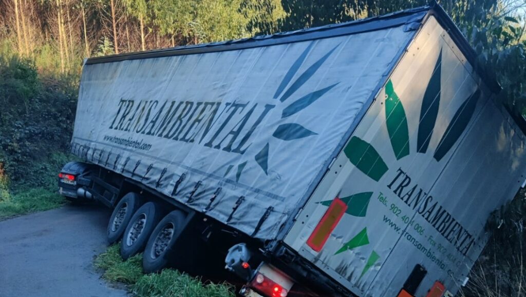 Todo ocurrió sobre las diez de la mañana de este miércoles y al parecer el conductor del vehículo de la empresa Transambiental utilizó el GPS y «fue engañado» al ser dirigido hacia una estrecha pista, y al intentar dar marcha atrás el camión se metió en una zanja y una parte medio colgado hacía un desnivel.