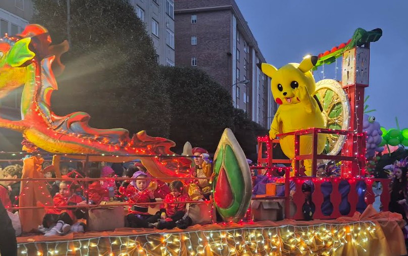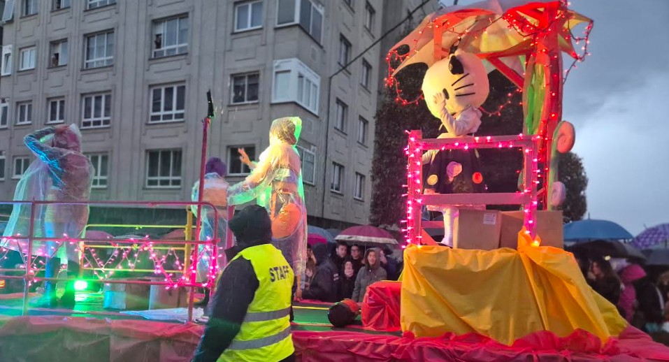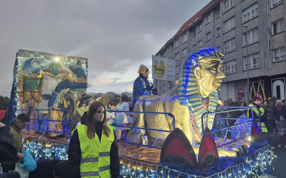 La comitiva real estaba formada por nueve carrozas, tres ocupadas por Melchor, Gaspar y Baltasar, y el resto las guerras K-pop. También, compartirán protagonismo con Stitch, Pikachu, Vaiana y Hello Kitty, a las que se sumaron la de Armada, así como vehículos de Protección Civil y Policías Local y Nacional y 061. Se echó en falta el camión histórico de los Bomberos de Ferrol.