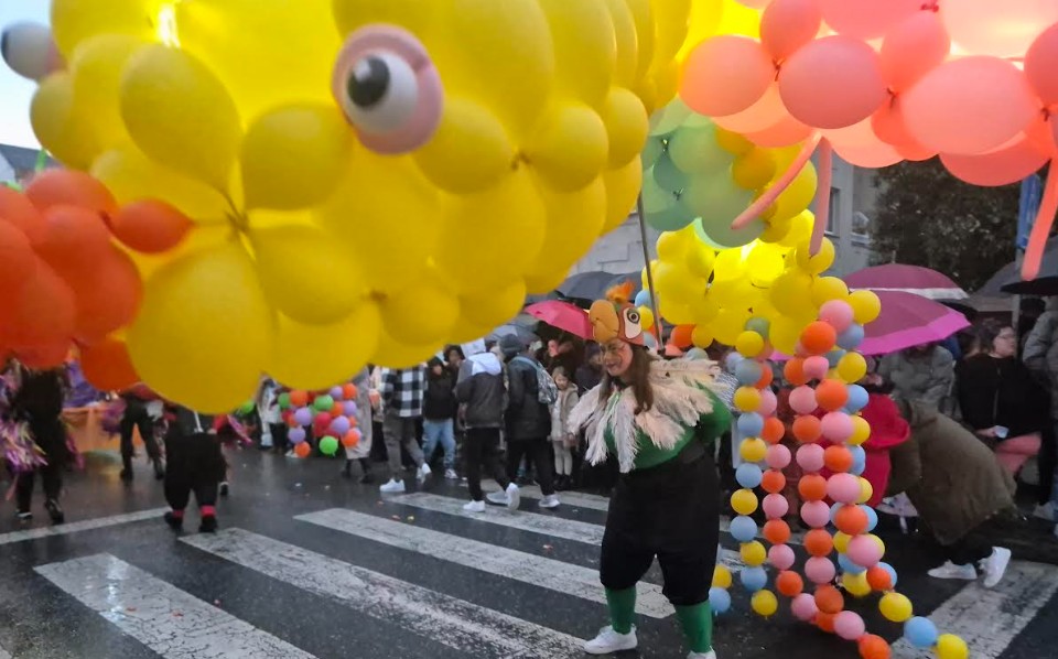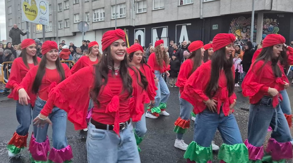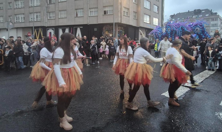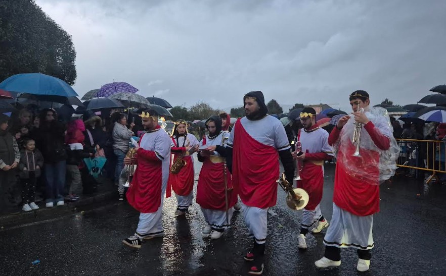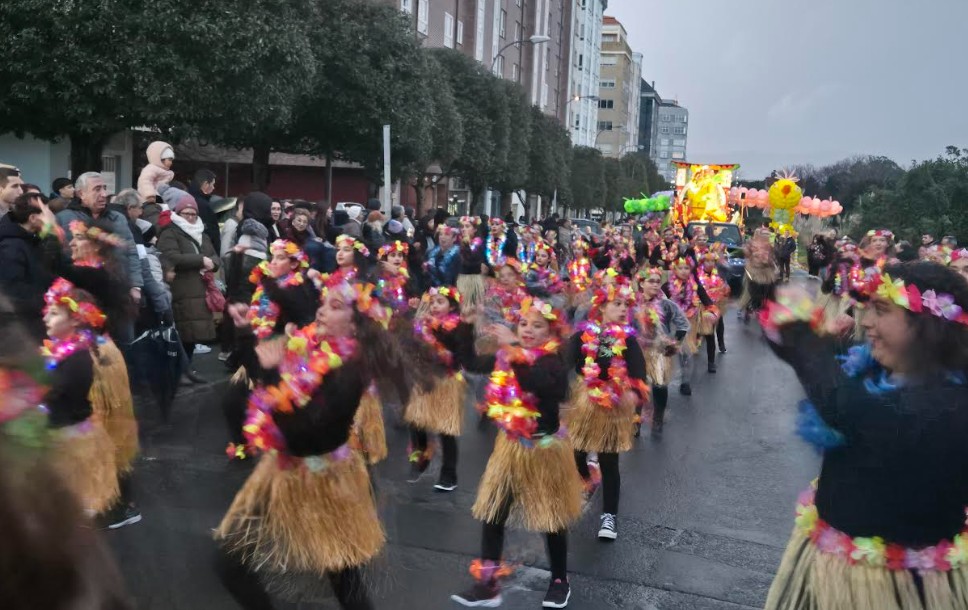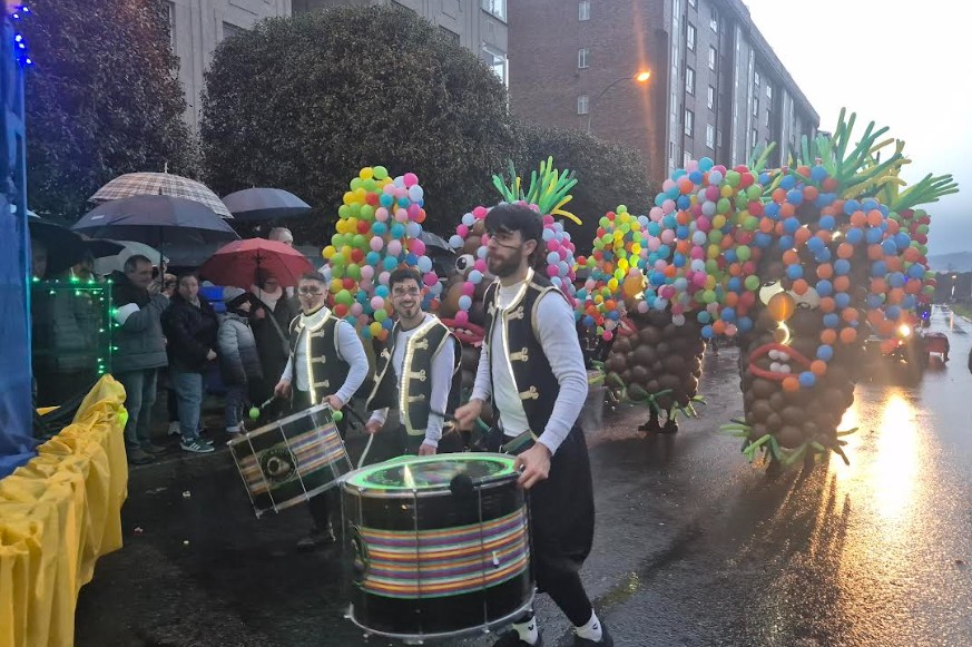 Los sones de las agrupaciones se juntaban con la música que se emitía desde los altavoces y con los griteríos de los niños y niñas ante la lluvia de caramelos que lanzaban los ocupantes de las carrozas.