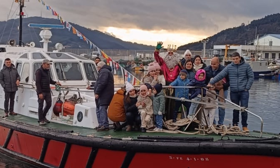 Ya por la tarde, a las 16, 45 se trasladaron en unas embarcaciones hasta el muelle de Ferrol. Fueron recibidos por un buen grupo de ferrolanos, muchos niños, y además…por una fuerte granizada.
