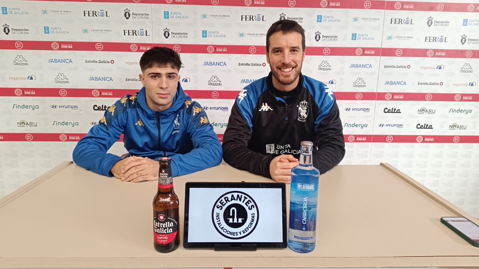 Antes de partir para tierras navarras, este jueves hablaban en la previa el jugador Novoa y el entrenador Gerard Casas, patrocinado por Serantes Instalaciones y Reformas.