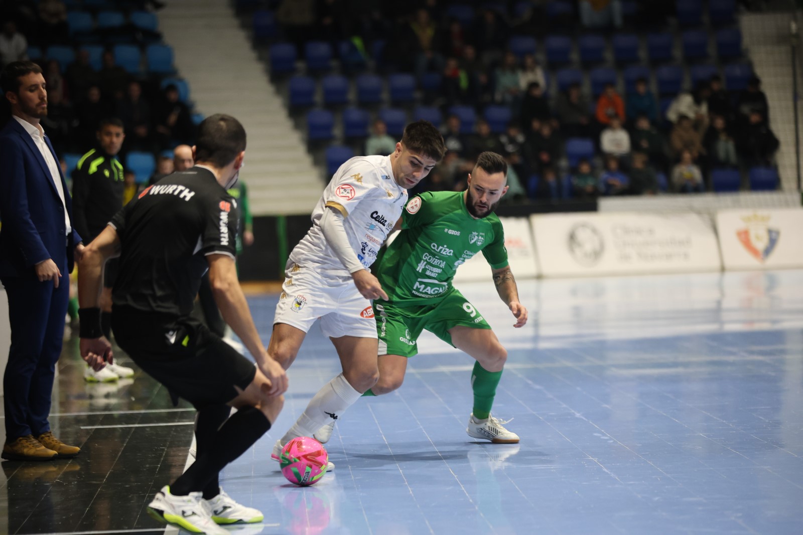 El CA Osasuna Magna lo intentaba también con mucho peligro por medio de Pachu, primero en una volea desde diez metros tras un córner que se iba fuera y, poco después, también tras otro saque de esquina, en un tiro en la frontal que se marchaba alto.