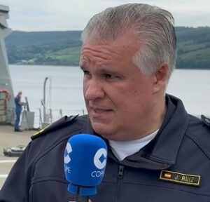 El contralmirante Ruiz Escagedo se dirigió a los representantes de los medios » muchísimas gracias por venir, y más un sábado a esta hora, a despedirnos. Para nosotros es un orgullo participar ydemostrar el compromiso de España con la Alianza Atlántica. Es un ejemplo más.
