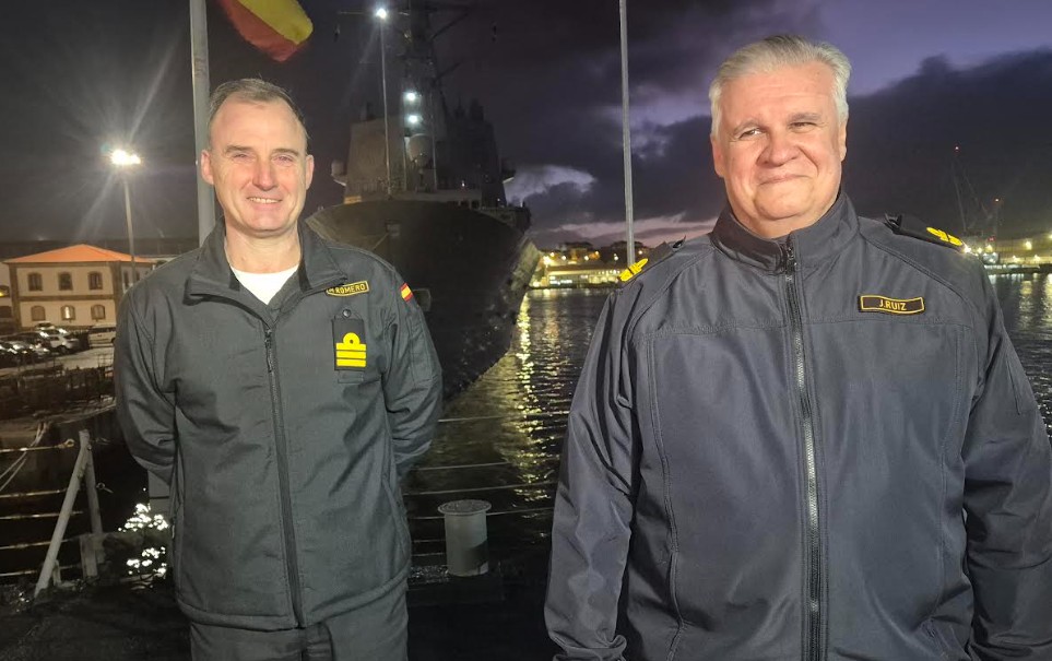Antes de zarpar, el comandante de la «Juan de Borbón», Miguel Romero Contreras, acompañado por el contralmirante Joaquín Ruiz Escagedo, mantuvieron un encuentro con los medios de comunicación.