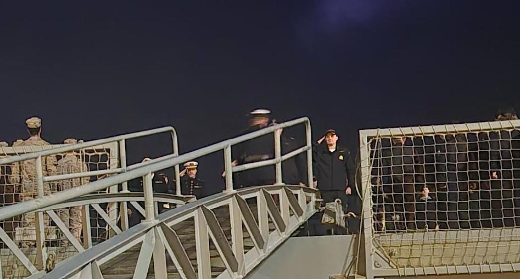 A las ocho y media de la mañana puntual, subió a bordo el general García Ortiz y tras ser recibido por el comandante del buque y el comandante de la 31 Escuadrilla de Superficie, dirigió unas palabras a la tripulación, que se encontraba formada en la zona de popa del buque, así como al grupo de once miembros de un equipo operativo de seguridad (EOS) de Infantería de Marina del Tercio del Norte y de la la Unidad Aérea Embarcada (UNAEMB) de la 10ª Escuadrilla que se encargará de un helicóptero SH-60B, a bordo de la fragata.