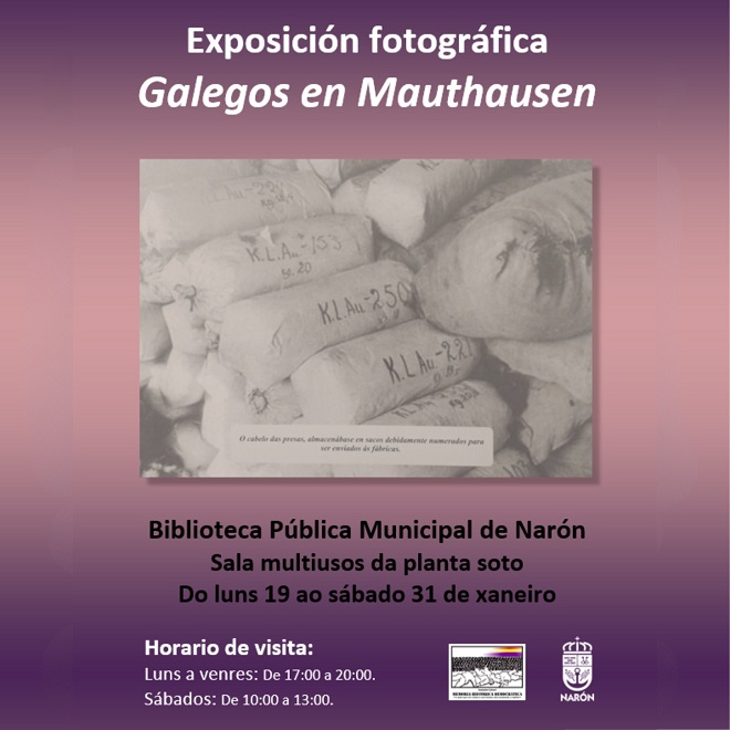 Os actos darán comezo este próximo luns 19 de xaneiro ás 17:00 horas coa apertura da exposición “Galegos en Mauthausen” na Biblioteca municipal de Narón, que volve acoller no mes de xaneiro esta mostra fotográfica promovida pola AMHD.