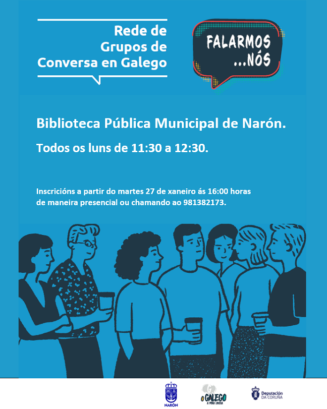 A Biblioteca Municipal de Narón porá en marcha en febreiro “Falarmos nós”, un grupo de conversa en galego pensado para persoas que queren empregar máis a lingua no seu día a día ou mellorar a súa expresión oral sen presións e nun ambiente acolledor.