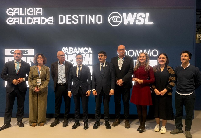 En esta jornada de miércoles tarde de Fitur 2026, se realizó la presentación oficial de los campeonatos de la liga mundial de surf WSL que se celebrarán a lo largo de este año en territorio gallego. La organización de estos eventos, demuestra un fuerte compromiso con Galicia, consolidando las pruebas celebradas en la región, siendo el territorio con más competiciones concentradas del circuito WSL en el mundo.