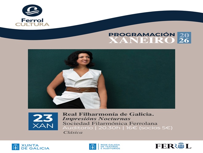 O primeiro concerto sinfónico de Ferrol en 2026 cubrirá a cidade naval do espírito musical das Impresións nocturnas,de tres grandes compositores do último século e cuarto: Maurice Ravel, Mary Howe e Gabriel Fauré.