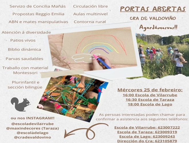 Las escuelas unitarias integradas en el CRA de Valdoviño celebran el próximo mes de febrero una nueva jornada de puertas abiertas para dar a conocer su día a día, sus instalaciones, y sobre todo, su proyecto educativo.
