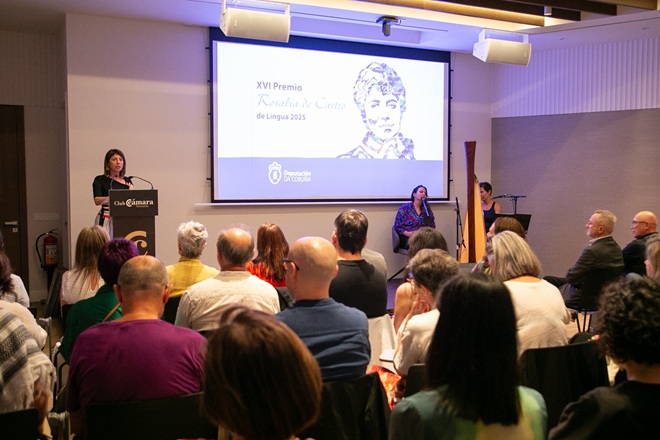 O premio Rosalía de Castro de lingua, convocado pola área de Normalización Lingüística da Deputación da Coruña, chega á súa décimo sétima edición para seguir recoñecendo iniciativas, traballos recentes, traxectorias de persoas, colectivos ou entidades comprometidas coa promoción e dignificación social do patrimonio lingüístico da lingua galega, tanto no ámbito da provincia coma o de toda Galiza. O xurado terá especialmente en conta a relevancia para o futuro do noso idioma.