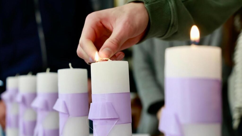 Los seis alumnos y alumnas del IES Canido encendieron candelas en recuerdo de todas estas víctimas, mientras sonaba una música de fondo, «El cisne» de Camille Saint -Saëns.