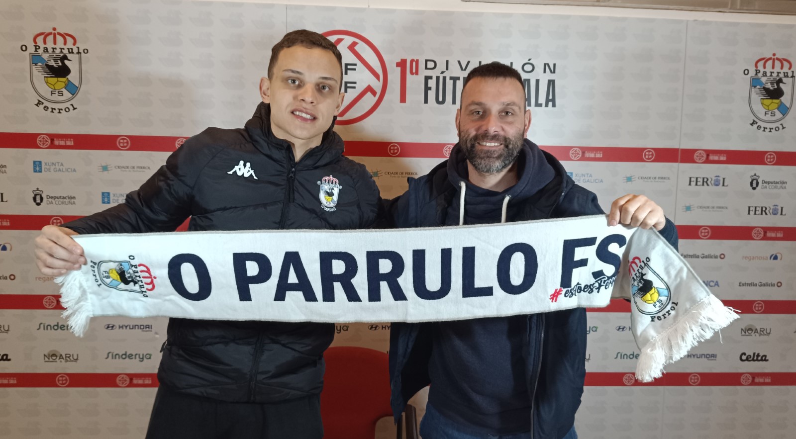 Bruno Días afronta sus primeros días como jugador de O Parrulo Ferrol y este jueves era el día elegido para realizar su presentación oficial en el Pabellón de A Malata, acompañado del director deportivo, Melo.