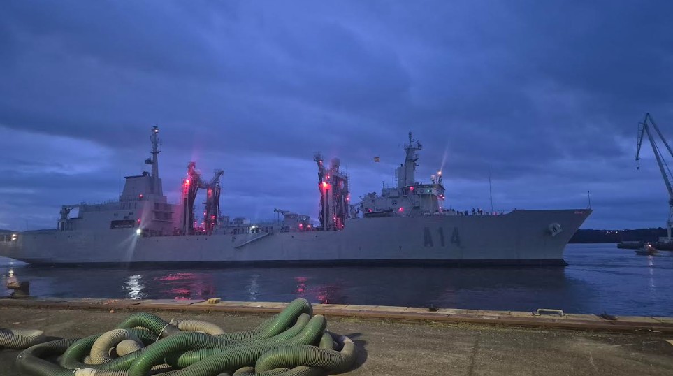 La fragata «Cristóbal Colón» era esperada este lunes en el Arsenal de Ferrol con el fin de receger algunos miembros de la dotación y continuar rumbo al norte europeo.