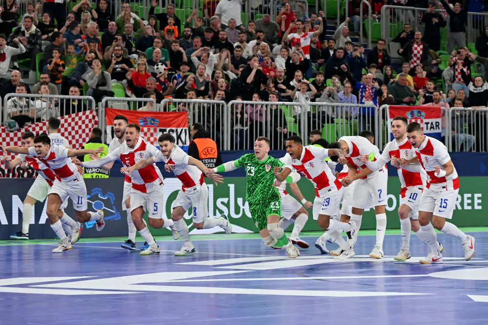 El metal se decidiría en los penaltis, donde ninguno de los dos equipos fallaba en los cinco lanzamientos reglamentarios, decidiéndose al fallo, con Niko Vukmir anotando el sexto lanzamiento y los franceses enviando alto el suyo, confirmando el bronce para Croacia, confirmando su mejor resultado en una Eurocopa de fútbol sala.