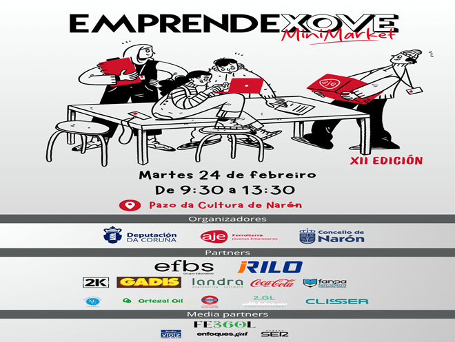 O Pazo da Cultura de Narón será escenario o próximo martes, 24 de febreiro, da XII edición do Proxecto Emprende Xove–Minimarket, que se desenvolverá en horario de 9.30 a 13.30 horas.