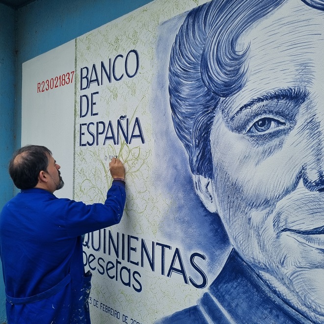 O pintor Manuel Carballeira inspírase no billete de 500 pesetas que convertía á autora na primeira muller da historia en figurar nos emitidos en España pola Fábrica Nacional de Moneda y Timbre.