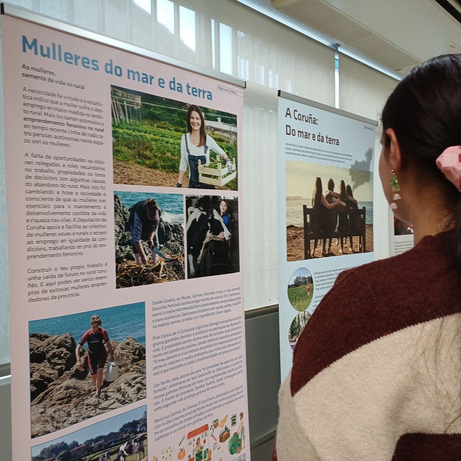 A Biblioteca municipal acolle esta mostra itinerante busca dar a coñecer exemplos de innovación, éxito e compromiso co rural e co mar que existen na nosa provincia, así como lembrar ás xeracións máis novas as posibilidades que ofrecen sectores tradicionais como o agrogandeiro ou o mariñeiro.