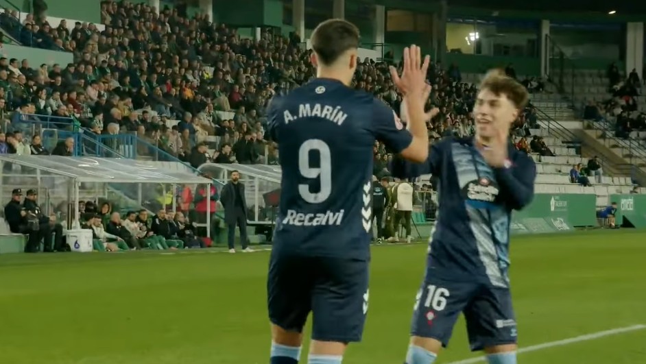 Un gol de Álvaro Marín en el descuento da la victoria al filial céltico en un partido que empezó con un gol en contra y con la expulsión de un jugador del Racing de Ferrol por dar un incomprensible mordisco en el brazo a un rival