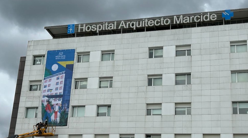 El Hospital «Arquitecto Marcide» de Ferrol del Complejo Hospitalario Universitario de Ferrol cumple cincuenta años. La climatología no permitió hasta ahora arrancar a inicio de año con la conmemoración de tan especial aniversario de este medio siglo de sanidad pública, pero ya a partir de este lunes, día 23, se puede ver una lona conmemorativa en una de sus fachadas principales. Esta lona abre las distintas actividades que tendrán lugar a lo largo del año, y de las que se irá dando cuenta. Recoge en imágenes su esencia, una infraestructura con pacientes de todas las edades y esos profesionales que día a día trabajan en pro de su salud.