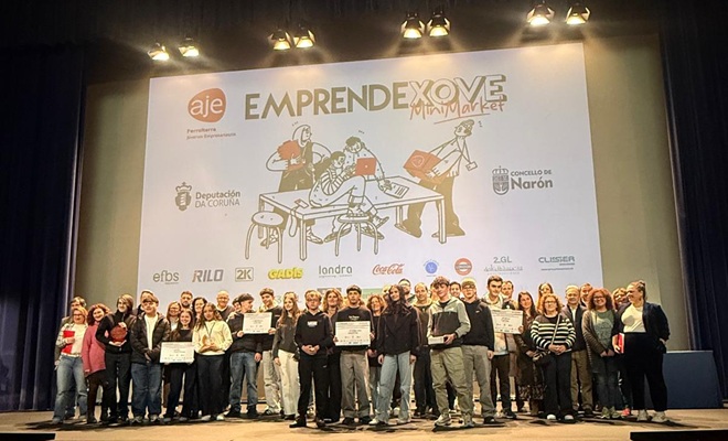 O Pazo da Cultura de Narón acolleu a celebración da XII edición do concurso Emprende Xove Minimarket, unha iniciativa organizada por AJE Ferrolterra coa colaboración do Concello de Narón e da Deputación da Coruña, ademais do apoio de diferentes empresas patrocinadoras da comarca que contribúen á celebración deste evento orientado a fomentar o espírito emprendedor entre a mocidade.