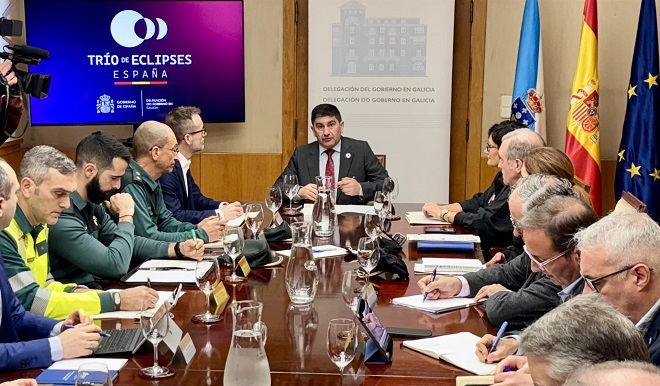 El delegado del Gobierno en Galicia, Pedro Blanco, ha presidido este miércoles una reunión de coordinación con participación de representantes de todos los organismos de la Administración General del Estado ante la previsión de desplazamientos por el eclipse solar del 12 de agosto, que no se ve en la Península Ibérica desde hace más de 120 años.