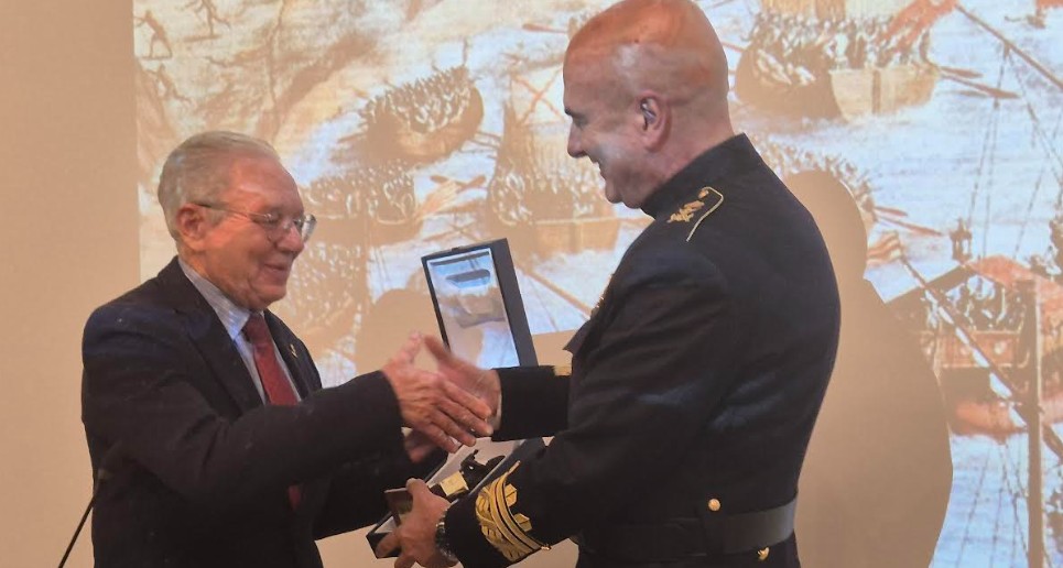 Y ya al final el Comandante General de la Fuerza de Infantería de Marina, General de División José Luis Souto Aguirre le hizo entrega al conferenciante de un recuerdo de su segunda estancia en Ferrol