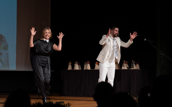 A gala estivo conducida con grande mestría e moito dinamismo pola actriz Isabel Blanco e o seu partenaire nesta ocasión, o tamén actor -e xa veciño noso- Kevin Lorenzo. Ambos luciron complicidade e moito humor na levanza dun evento que tivo parte institucional coa intervención do alcalde, Secundino García Casal, quen agradeceu a presenza do público e a implicación de todas as persoas participantes. “Como sabedes sempre o facemos a última fin de semana de febreiro, pero tivemos que retrasalo para non contraprogramar aos Goya”, comentou con humor antes de destacar o valor das pezas presentadas.