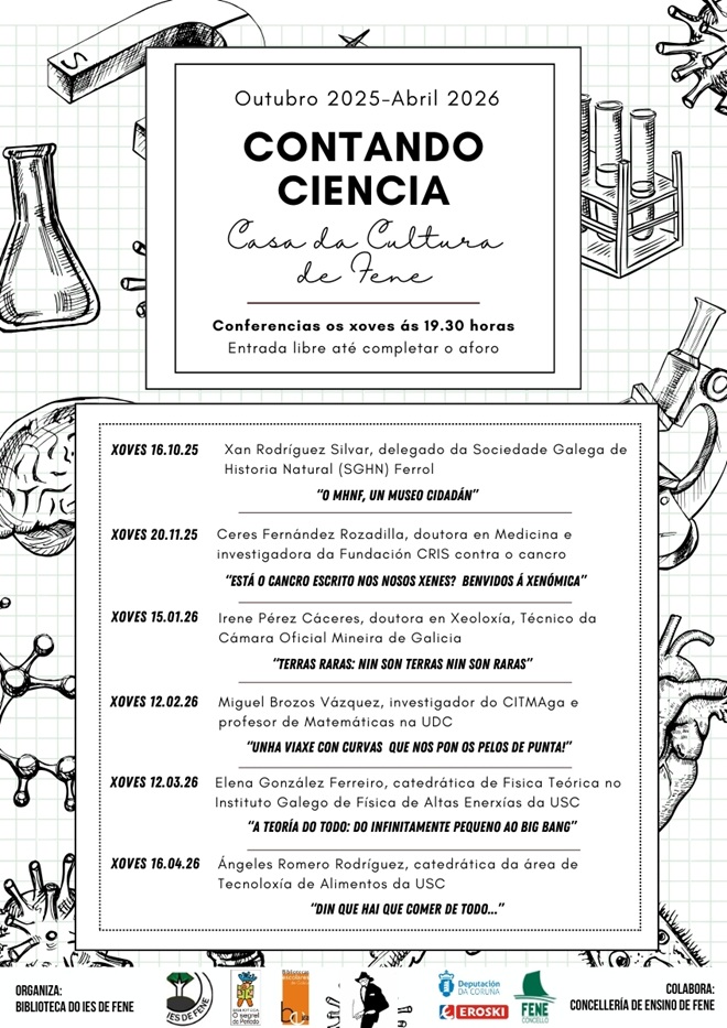 Ciclo organizado pola Biblioteca O Segrel do Penedo do IES de Fene coa colaboración da concellería de Ensino de Fene e baixo a coordinación da mestra Violeta Miraz Seco.