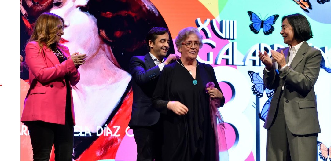 (Fot. Eiravedra)-La cantante y pintora ferrolana María Manuela Díaz Orjales ha sido premiada con el XVIII Galardón 8M por su trayectoria personal, artística y social, por el concello de Ferrol, en un acto conmemorativo del Día de la Mujer, celebrado en la tarde de este domingo en un teatro Jofre abarrotado, presidido por el alcalde José Manuel Rey Varela.