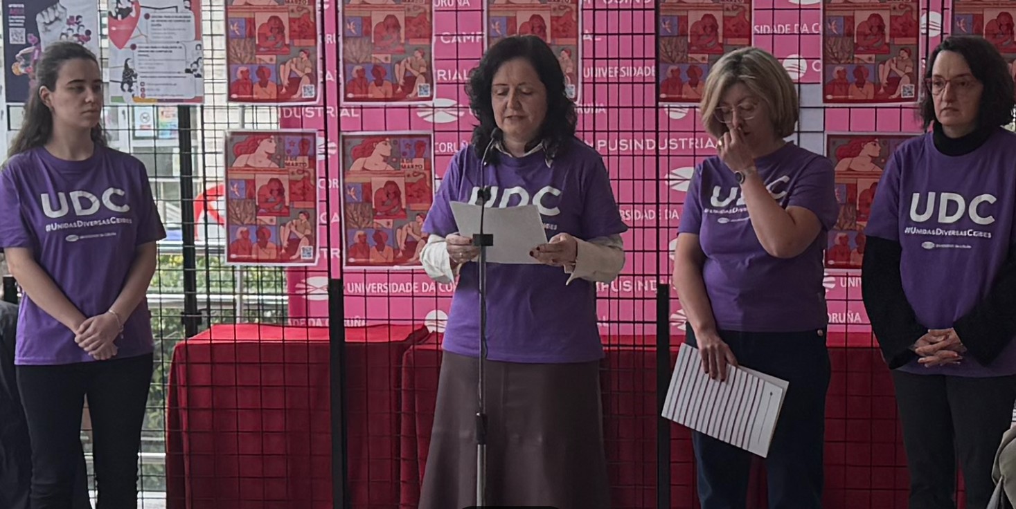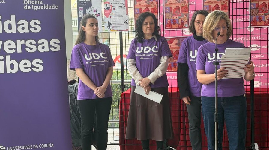 Logo da lectura do manifesto, a subdirectora da Oficina de Igualdade da UDC, María José Abad, deu conta da avaliación intermedia do III Plan de Igualdade da universidade, correspondente ao primeiro bienio do mesmo, así como dos retos pendentes para os próximos dous anos, destacando os logros en gobernanza e na prevención de violencias machistas.