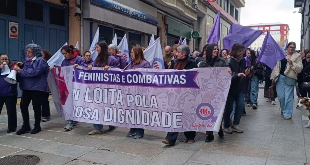 Centenares de personas recorrieron en la tarde de este domingo las calles del centro de Ferrol convocadas por la Marcha Mundial das Mulleres con el fin de, un año más, reivindicar el 8-M, reivindicando los derechos sociales y laborales de la mujer y su lucha por conseguirlos.