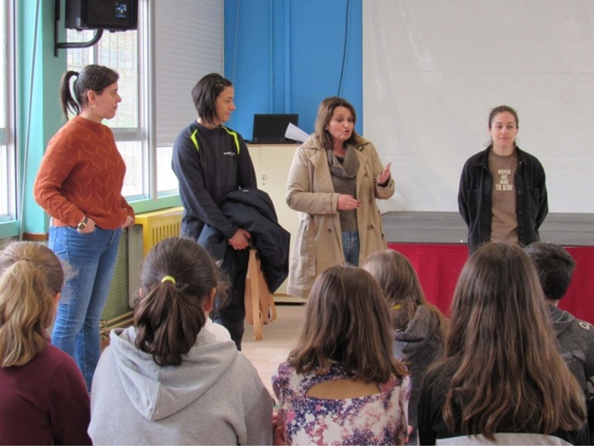 Nueva edición del ciclo municipal “Rompiendo moldes”, que busca promover la eliminación de estereotipos de género en el ámbito laboral. La jugadora profesional de fútbol sala, Ale de Paz, y la única técnica de mantenimiento de parques eólicos de Siemens Gamesa en Galicia, Sandra Castelos, fueron las protagonistas de las charlas de este año, promovidas en los centros escolares por el Ayuntamiento de Neda, en el marco de las actividades del 8M.