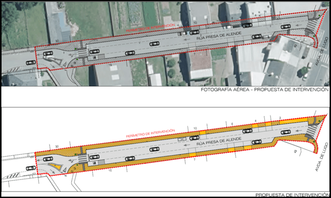 Entre as actuacións previstas destaca a ampliación das beirarrúas, a eliminación de desniveis e a execución dunha plataforma única para peóns e vehículos, o que permitirá un uso máis seguro e accesible do espazo público.