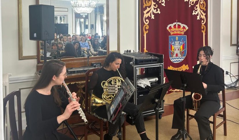 No faltaron las intervenciones de alumnos del IES «Concepción Arenal», Olivia Cabezas Méndez y Carla Gutiérrez Porto, que expusieron su opinión sobre la repercusión del arte en la sociedad, y tras ellas, de nuevo una interpretaciòn del trío de la Banda Ferrolá de Música, ofrecieron «Aria de la Suite Orquestal número 3″ de Bach.
