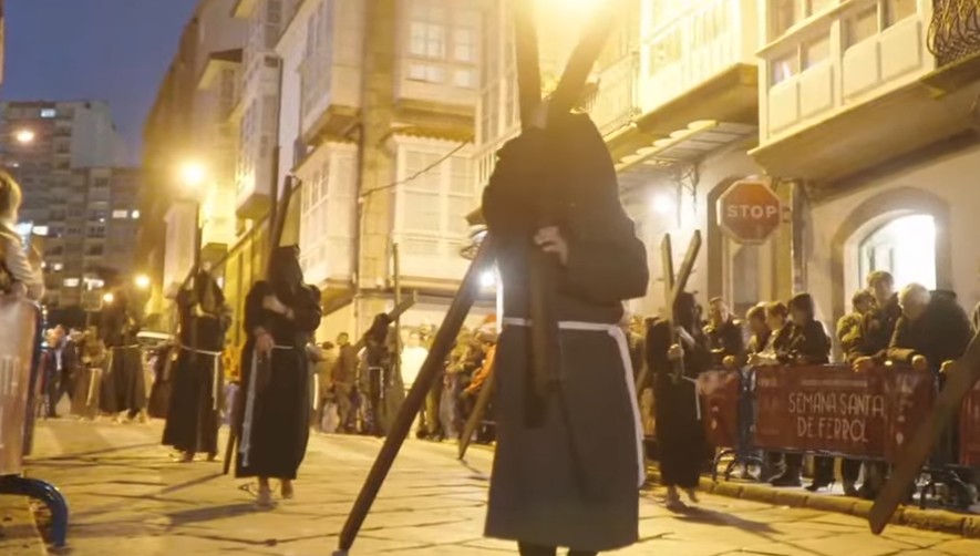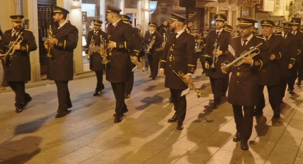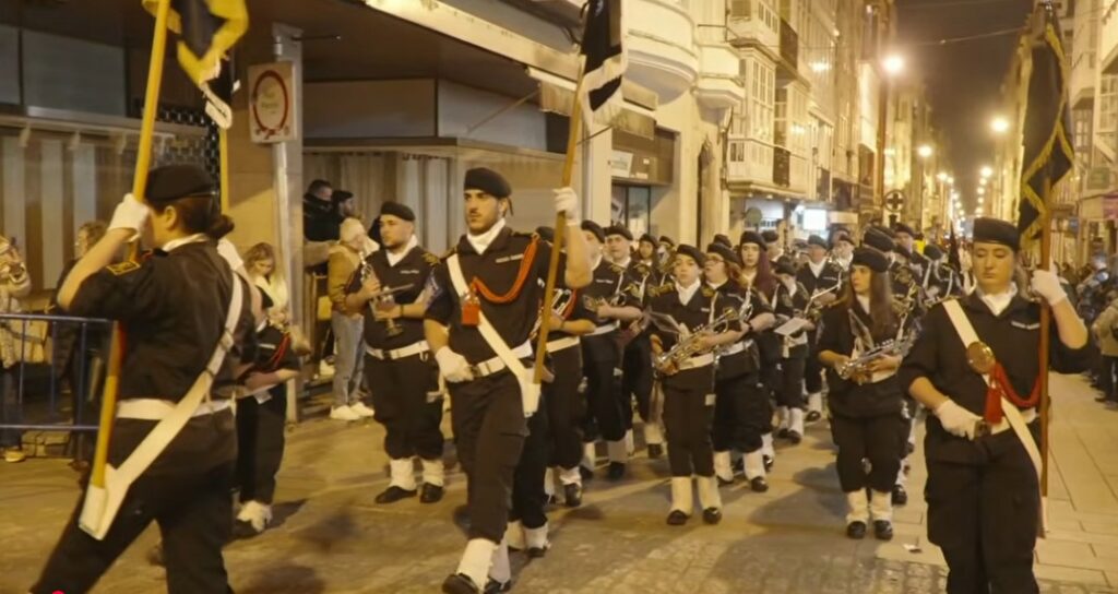 Tras la Cruz Guía se encontraba la banda ACOTAGA, agrupación musical muy fiel a la Semana Santa Ferrolana y ya seguidamente tras el paso de varios tercios sonaba el himno nacional, la imagen de Cristo Rey salía a la calle.