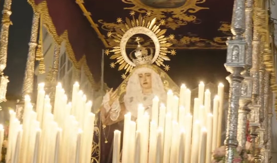 Cerraba la procesión el “paso” de la Virgen de la Amargura, bajo palio, que era llevado a hombros por portadores de la Verónica. Un precioso trono plateado que también presentaba una hermosa ornamentación floral a cargo de rosas blancas.