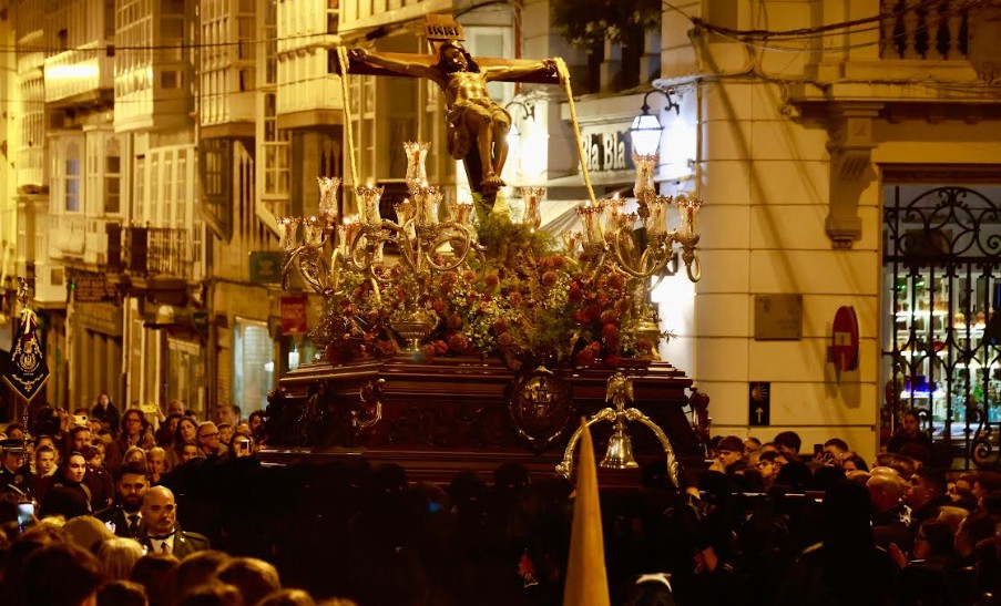 –19:00 h. Procesión del “Cristo de la Buena muerte”, Cofradía de la Soledad. Recorrido: Capilla de la Venerable Orden Tercera, Glorieta de Alfredo Martín, Real, Coruña, Magdalena, San Diego, Real y retirada en la capilla de la Orden Tercera. Imágenes, del Cristo de la Buena Muerte , de Jesús Cepeda, 2025; y de la Virgen del Perdón y de la Misericordia, de Juan José Negri Acevedo, 2015.