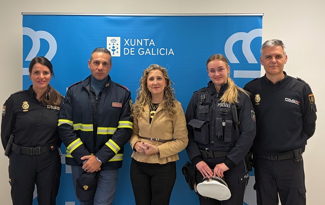 La delegada territorial de la Xunta en Ferrol, Martina Aneiros, recibió este lunes en la Delegación Territorial a la comisaria de la Policía Nacional de Ferrol-Narón, Cristina Ochoa, con motivo del Proyecto Comisarías Europeas. Junto a Ochoa, acudieron Luisa Deelmann y Carlo Mincone, los dos policías extranjeros que están participando en este programa desde 27 de marzo hasta 6 de abril, coincidiendo con la Semana Santa.