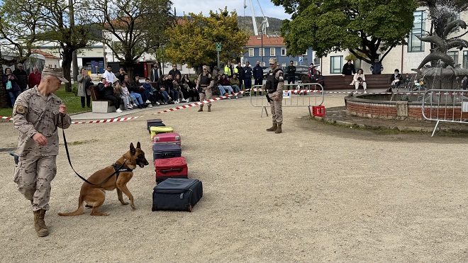 La IV Fiesta del Marisco de la Cofradía de Pescadores de Ferrol continúa con su programación gastronómica, musical y de divulgación, historia y tradición. En este contexto, este martes al mediodía tuvo lugar en el Jardín de la Ranita una exhibición de la Sección Cinológica del Tercio Norte de Infantería de Marina, en la que participaron varios de sus perros especialistas en labores de seguridad, y detección de explosivos y sustancias estupefacientes. Los animales sorprendieron al público asistente por su capacidad para responder correcta y rápidamente a las misiones marcadas por sus entrenadores.